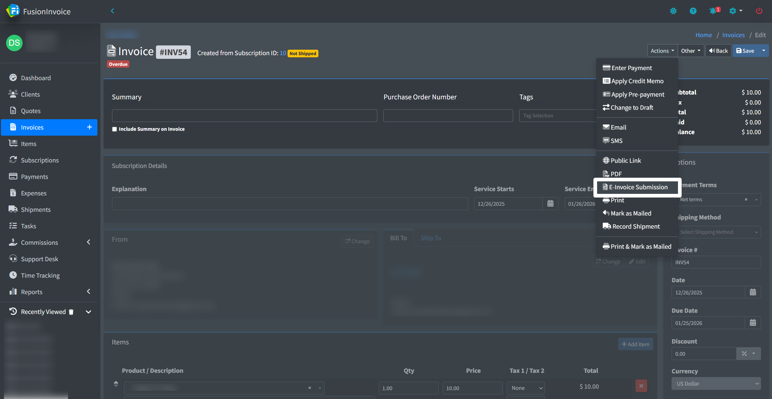 Setting Up E-Invoicing in FusionInvoice