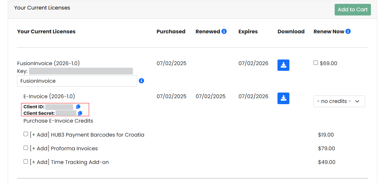- Log into your account at FusionInvoice.com and download the add-on package to install. Save it locally to your computer.